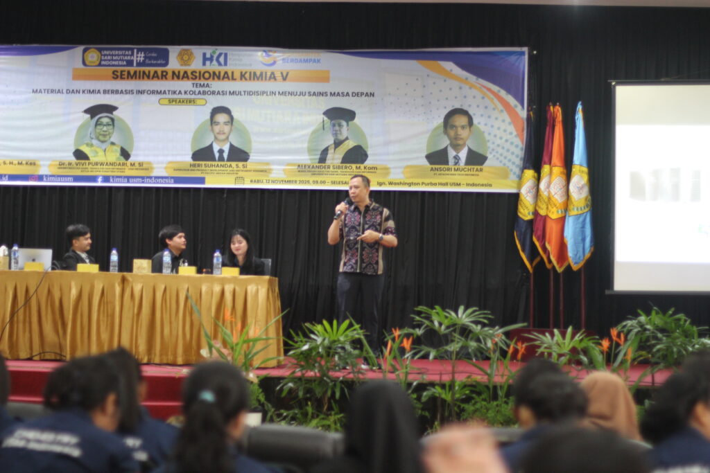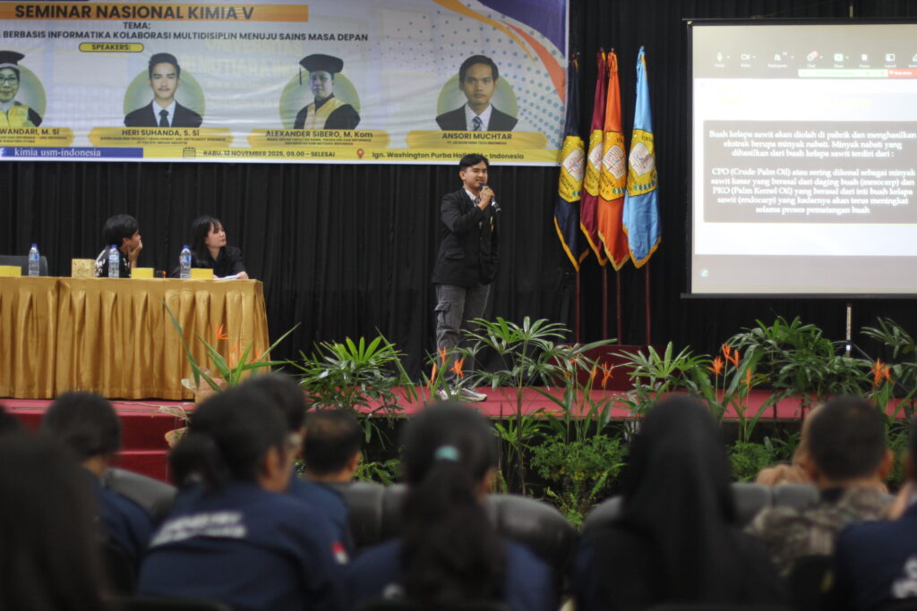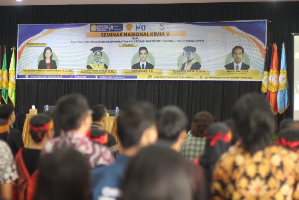 USM-Indonesia, Rabu (12/11/2025) – Program Studi Kimia Universitas Sari Mutiara Indonesia menggelar Seminar Kimia V bertema “Material dan Kimia Berbasis Informatika: Kolaborasi Multidisiplin Menuju Sains Masa Depan” di Ign. Washington Purba Hall.